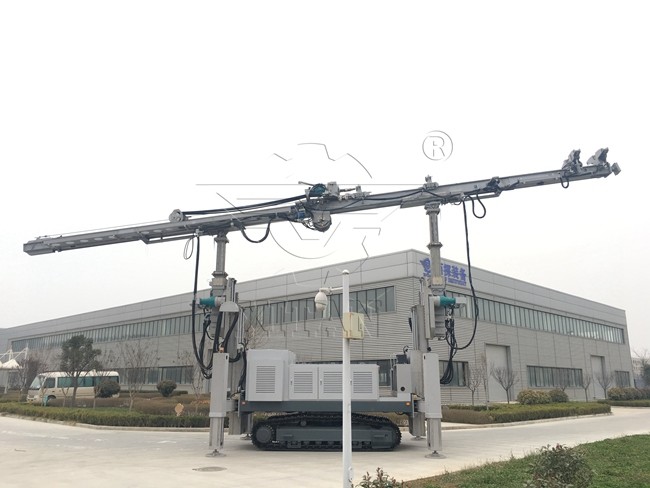 The XPS-15 horizontal jet grouting drilling rig is special equipment for advanced pre-supporting when encountering aeolian sand and other weak layers during tunnel construction. Through the jet grouting technique, a closed waterproof and sand-fixed jet-grouted pile curtain are formed before the tunnel excavation. The drilling rig can also be equipped with different drilling tools for slope disaster treatment and bolting.