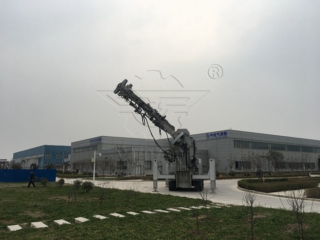 6. Structural parts: Frame slewing mechanism, dual-arm supporting, and mast are integrated into the compact structure. Dual-arm supporting is two-grade lifting, stable supporting, avoiding drift during deep hole operation. The first grade with a turning machanism can rotary ±120°. It can achieve multi-hole operation in the same working plane for improving work efficiency. The mast is composed of three sections, both ends are foldable for easy transportation. The power head has a four-grade speed change, a wide speed range, and large torque. (Optional hydraulic impact power head)