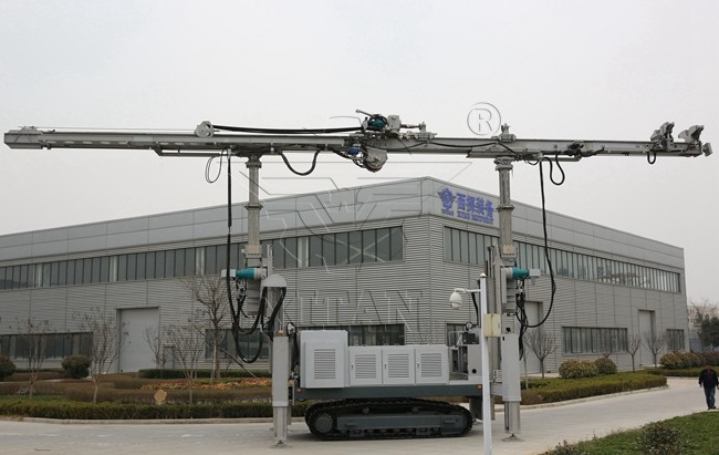 The stroke of the power head is 14m, and the length of the drill rod is 15m. It can drill a hole and jet-grouted pile in one go. Feeding and pulling back by hoist; the gripper supporting drill rods and shackles, the labor intensity is reduced. The front end of the rear gripper is equipped with a pull-back cylinder. The stroke of it is 600mm and the pulling back force is 15.7 tons. When the drill is stuck, the winch can pull back forcibly.